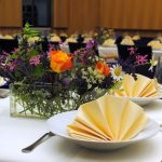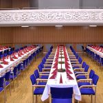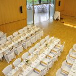 Die Lage unseres Festaales und dem großräumigen Foyer mit Blick auf Teich und Park ist ein besonderes „Platzl“. Bei Schönwetter lädt auch die Terrasse ein.